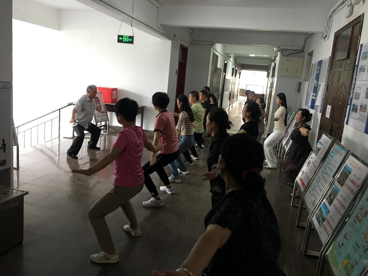 在此次培訓活動中,張懷軍老師現場教授了“承上啟下、懷抱日月、鯤鵬展翅、前呼后擁、白猿甩臂、順手牽羊、野馬翻蹄、白馬做坡”等八個動作。參加學習的干部職工認真學習每一個動作,深刻領悟每個動作的精髓要領。