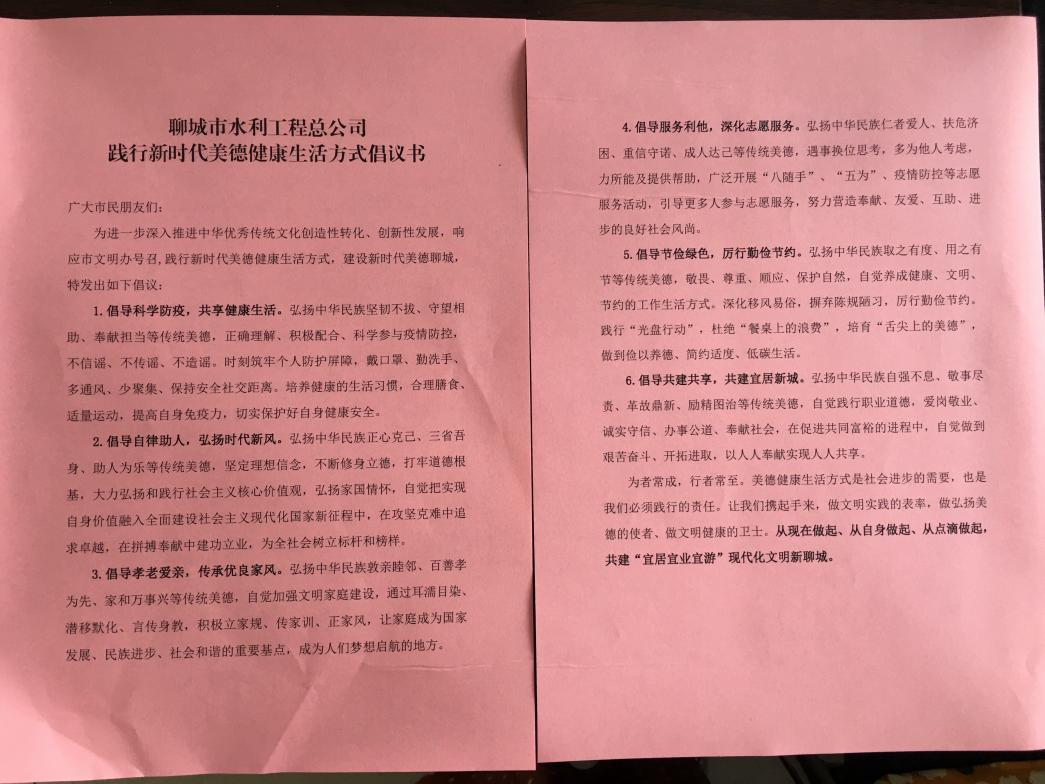 為倡樹新時代美德健康生活方式,助力建設時尚宜居美麗新聊城。6月29日,聊城市水利工程總公司開展新時代美德健康生活方式宣講活動,志愿者們走上街頭、走進商家進行美德健康生活方式宣講。
